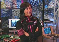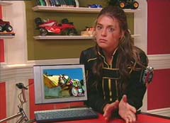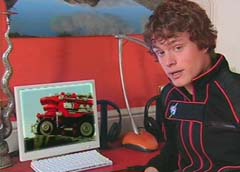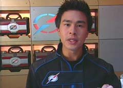 Spencer is playing a video game. Spencer: Oh, Oh, Ow! Oh dear. I do hope that was insured. On hello! Spencer Spencer here. Spencer goes on to explain that he is in charge of various data on the Power Rangers. Spencer holds up a disc that contains information about the Rangers' zords.