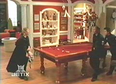 Dax and Will are in the mansion, playing pool. Dax: Eight ball, corner pocket, eyes close. Will: Don't you think you should break before calling your shots. Dax: Watch and learn my friend. Dax closed his eyes and took the shot. The balls went everywhere. Dax: What happen?! Will told Dax he had lost. A creepy monster came up and told them I go next. Dax and Will prepared themselves. Ronny took off her mask laughing. Ronny told them she thought she would go as something scary this year. Will told her Halloween is for kids. Ronny ignore him. Ronny told them if they didn't help with the decorating, they wouldn't be able to have any punch. Mr. Hartford's voice came over the loudspeakers and he instructed everyone to come to the control center.