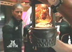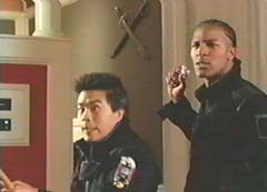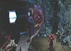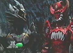 Ronny and Will are taken to the woods and tied to a tree. Moltor, the Fearcats, and several Lava Lizards are close by. Ronny asks Will if he can hear anything. Will uses his hearing to listen. The Fearcats are not happy with Moltor bringing back Will or the Sentinel Knight. The Sentinel Knight is too powerful for the converter. Moltor tells them he knows that. Moltor will try to convert Sentinel Knight to evil, and if that doesn't work, Sentinel Knight will be destroyed. The Fearcats ask again about Will. Moltor tells the Fearcats not to worry, he will destroy Will. Ronny asks Will what is being said. Will doesn't say anything. Instead Will starts working on freeing them. In the control center, Rose, Dax, Mack, and Tyzonn slid down the poles and hurry over to Mr. Harford. The four teens are worried about their friends and want to rescue them. Much to their surprise, Mr. Hartford wants them to go to Egypt. Mr. Hartford tells them the amber beetle came back with a positive jewel reading. Dax, Mack, Tyzonn, and Rose want to help their friends instead. Mr. Hartford tells them Will and Ronny are trained Power Rangers, they know what to do. Reluctantly, Mack, Tyzonn, Rose, and Dax leave for Egypt. Back in the woods, Benglo breaks up an argument between Mig and Moltor. The villains then notice Ronny and Will have escape. Ronny and Will run through the woods with the Fearcats and the Lava Lizards after them. Ronny stops Will and asks him again what was being said. Will tells Ronny that he was never part of the plan and how they plan on destroying him. The Fearcats have spotted them. Ronny lets herself be captured while Will gets away from the Lava Lizards. Will contacts Mr. Hartford and lets him know what is going on. Mr. Hartford instructs Will to return to base and wait for the others. Will refuses, as he tells Mr. Hartford, no Ranger left behind. In the Fearcats hideout, the Fearcats drag Ronny towards the converter. Moltor and his Lava Lizards enter and start the converter up. Moltor places the Sentinel sword into the panel to turn it evil. Meanwhile, Will is searching through the woods when he is stopped by Flurious, Norg, and several Chillers. Will morphs into Black Ranger. Black Ranger, with his Hovertek cycle, battles the Chillers. While Black Ranger is occupied, Flurious tells Norg to search for the Fearcats' hideout. Norg leaves. Black Ranger destroys the Chillers and comes after Flurious. Flurious vanishes before Black Ranger can do anything. In the Fearcats' hideout, Ronny struggles to free herself from Mig and Benglo. Mig and Benglo placed her hands on the converter and Moltor starts the process. Ronny can do nothing, as her power starts to drain from her.