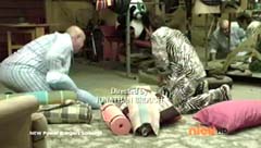 Bulk and Spike enter the clubhouse with their arms full of bedding. Spike: Why do we have to sleep on these Uncle Bulk? Bulk: Because these are what traditional samurai slept on. We must live like a samurai. Bulk and Spike sit on the floor and start to set up their bed. Bulk: Hey, that's mine. Spike passes it over. Spike: Hey, is this your pillow? Bulk: Yeah. Spike: yeah, okay. Spike hits Bulk with the pillow and laughs. Soon they were tugging on a blanket. Eventually everything gets settle and Bulk turns off the light. Skull, chewing gum, lends into Bulk's ear. Spike: Can you tell me a bed time story? Spike lays back down as Bulk rolls over onto his back. Bulk: Once upon a time, there were two guys in samurai training. They were very....Bulk stops as Spike is fast asleep and snoring loudly.