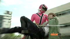 Spike is dreaming of Pink Ranger battling several Moogers. She extends her hand to him. Pink Ranger: Come with me, my love. Pink Ranger helps Spike to his feet. Spike leaps into the battle as Pink Ranger battles and defeats the Moogers. Pink Ranger: you're safe now, my darling. Pink Ranger holds Spike in her arms.