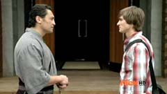 Robtish is destroyed. The Rangers are in high spirits. Blue Ranger is very happy that it worked. After the battle, Mentor Ji paces outside Shiba House until the gates open and Emily, Mia, Jayden, Mike, and Kevin run inside. Mentor Ji is very happy to see Jayden is back. They shake hands. Jayden apologizes for leaving. Mentor Ji tells him it doesn't matter, as long as you are back. Jayden confirms that he is back where he needs to be. Back with his team. Mentor Ji tells them, good work. I think you all deserve some fun. Anything you want. Mike, Mia, Kevin, and Emily get very excited. Kevin is eager to try something new. Mike suggests the movies. Emily thinks that's a good idea. Mia, Kevin, Mike, and Emily head into the house. Mia wants to watch a romantic comedy. Mike doesn't think so, unless it involves zombies. Mentor Ji and Jayden pause outside the house. Mentor Ji tells Jayden to go and enjoy himself. The fight will continue tomorrow. Jayden replies, I know there is a lot of work left to do. Mentor Ji agrees, but tells him not to worry. We'll tell them when the time is right. Jayden concludes, good thing I have this team to see this through. Mentor Ji and Jayden walk into the house.