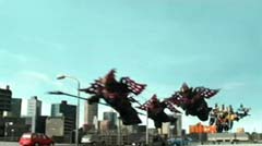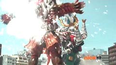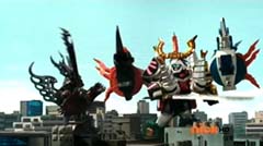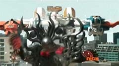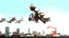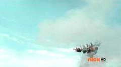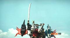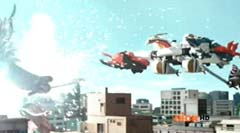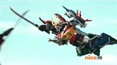 Red Ranger decides to let Blue Ranger take the lead. Beetle Zord, Tiger Zord, and Swordfish Zord are summon and Samurai Battlewing is formed. Samurai Battlewing fires at Robtish. Robtish falls to the ground. Red Ranger looks over the sketches and concludes it's an air strike combination. The Rangers create the symbol power and Battlewing Megazord is formed. Blue Ranger is very excited over the new Megazord. Red Ranger is impressed. Robtish gets back up. Battlewing Megazord flies into the sky. Yellow Ranger can't believe they are flying. Robtish commands the flying Moogers to attack. The flying Moogers fire at Battlewing Megazord. Red Ranger warns the rest of the Rangers there are Moogers on their tail. The Battlewing Megazord pulls up. The flying Moogers continue to fire at Battlewing Megazord. Battlewing Megazord flies through the Moogers, firing at them. Battlewing Megazord battles several of the Moogers. Battlewing Megazord knocks several of the Moogers out of the sky. Soon Battlewing Megazord flies after the remaining Moogers. The Moogers are destroyed. Battlewing Megazord faces Robtish, who thought they had flown the coop. Red Ranger states, looks like we saved the worst for last. Robtish charges towards Battlewing Megazord with his sword. Robtish and Battlewing Megazord battle. After a couple of strikes, Blue Ranger suggests they fly up, so they can take him down. Battlewing Megazord flies up into the air. Battlewing Megazord flies towards Robtish and strikes him hard.