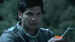 Antonio walks along a pathway. He thinks to himself, I won't let this happen to Emily. Antonio finds a spot and takes Clawzord out of his fishing cart. Antonio sits a short distance away from the cart. Antonio takes out his morpher and punches in a power symbol. He calls out, Samurai Symbol Live! He aims it at Clawzord and the symbol hits Clawzord. Clawzord flickers for a moment and then goes back to normal. Antonio knows he was so close.