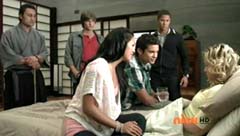 Mia wipes Emily's forehead with a damp cloth. Mia and Mike are still keeping a careful watch over her. Emily starts to wake up. Mike hollers that Emily is awake. Kevin, Jayden, and Mentor Ji rush into the room. Mia and Mike help prop Emily up. Emily apologizes to them. I let him get me. Mike tells her, don't be silly. We're just glad you are okay. Mike hands her a glass of water. Emily tells them, thanks for putting on the brave face for me. But I know I'm not okay. I feel empty. Mia tells her not to worry. We will figure it out. Jayden kneels by Emily's bed and tells her we're not going to let you down. We'll save you. Just hold on until then. Emily falls back asleep. Mia gets upset, oh no! She's falling back asleep! Mike shouts Emily's name, but gets no response. He gets angry and races out of the room. Kevin and Mia chase after him. Jayden is about to do the same, but pauses at the doorway and tells Mentor Ji, look after her. Jayden follows his friends out.