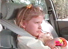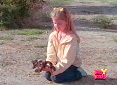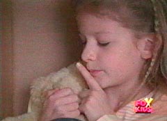 Holly Zaskin is the daughter of Dr. Michael Zaskin. Dr. Michael Zaskin is a scientist working at Bio-Labs and in charge of discovering the quantum secrets. Dr. Zaskin was about to leave for work, when Holly came racing out the door. She told her father that he had forgotten to tell her goodbye. Dr. Zaskin pulled Holly into a hug and gave her several kisses as he asked her to forgive him. She giggled and replied yes. Dr. Zaskin got into his car and Holly entered her house. She had a bear in her arms and realized that her dad had forgotten to say goodbye to Theo. Holly walked back outside and was horrified to see her dad surrounded by several Cyclobots and Nadira. Nadira spotted her and told the Cyclobots to catch her. Dr. Zaskin yelled at his daughter to run. Holly took off running, with her bear in a tight grip. She managed to get away by hiding in an empty box. Holly told Theo to stay quiet as she heard a couple of Cyclobots close by. She poke her head out when she thought they had passed. Once the Cyclobots were gone, Holly got out of the box. She didn't know what to do and wandered around in Silver Hills. Holly came to the scene of a car accident. The man was very angry at the woman who had crashed into his car. Another young man walked up and told the angry man to chill. The angry man didn't and soon the young man had him on the ground. The angry man ran off. The young man gave the young woman his card, and told her that his name was Lucas and that he did odd jobs if she needed any help. Holly nodded, as she knew what to do. Lucas had gotten into his car when Holly reached his car from the other side. She poked her head in and told him that she wanted to hire him as a bodyguard. Lucas was slightly taken aback and couldn't imagine why a child would need a bodyguard. Holly told them that they were after her. Lucas still did not believe her. Exasperated, Holly asked him if he wanted the job or not. Lucas agreed and Holly got into the car. Lucas still thought that Holly was messing with him and asked where she lived. Holly gave her address, but told him that she couldn't go back, as they were looking for her. She also tells him about her father. Lucas begins to think maybe he should check into Holly's story. Lucas tells Holly that he has to call some friends and pulls over. Lucas is about to get out when Holly cranks up the radio. Lucas turns it off and tells her not to touch anything. Lucas walks to a payphone while Holly sticks out her tongue at Lucas and calls him a crouch. Lucas pretends to make a phone call as he contacts Trip. Trip looks up the information and tells Lucas that Dr. Zaskin is her father and that he has been kidnapped. Jen instructs Lucas to keep an eye on Holly and he reluctantly agrees after telling Jen that Holly is kinda of a pain. Holly begins to scream, the car is surrounded by Cyclobots. Lucas takes care of them and then enters the car. They take off racing and Holly comments that Lucas is not much of a body guard. They are soon confronted by Klawbox. Lucas tells Holly to go hiding and he will deal with the mutant. Holly hides but watches the battle. Lucas is not doing well and after some hesitation, morphs into the Blue Ranger. Holly is stunned, but soon cheering the Blue Ranger on. Klawbox had Blue Ranger knocked to the ground and is about to make a fatal blow, when Holly comes riding out of her hiding spot. She stands in front of the fallen Blue Ranger and tells Klawbox to pick on someone else. Klawbox makes some threats and Holly offers Theo as a peace offering. Klawbox takes Theo and tells Holly this is what he thinks of her bear. Klawbox tosses the worn bear into the air and fires at it. Holly screams and goes running to her scorched bear. This enrages Blue Ranger, who find the strength to continued the battle against Klawbox. After Klawbox is down, Blue Ranger walks over to the sad Holly and tells her it looks like she is his bodyguard. The rest of the Rangers arrived and the battle continues in zords with the eventual capture of Klawbox. Afterwards, Lucas drives Holly home. They get out of the car and Lucas tells Holly that he is sorry about what had happened to her bear. Lucas also hints about his secret and Holly reassures him that she won't say anything about Lucas being the Blue Ranger. Holly is about to leave, when Lucas asks her to wait. Lucas reaches into the car and pulls out a large teddy bear. Holly is thrilled with the gift. She gives Lucas a big hug and a kiss on the cheek. Her dad walks out of the house and Holly runs to him. She leaps into her dad's arm and her dad is very happy to see that she is okay. Carried by her father, Holly and her dad entered the house.