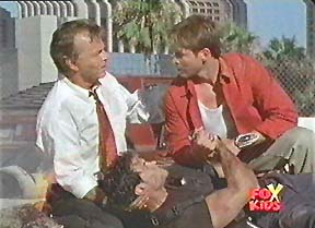 Wes sends his friends back to the year 3000. He then returns to the city to find Eric badly hurt. Wes helps Eric along to a safe spot. Wes tells Eric that they need to work together. When Eric replies that he works alone, Wes becomes exasperated and demands an explanation for Eric's constant rejection of friendship. Eric tells Wes of his background and tells him they have nothing in common. Wes explains that they do - making their own destinies and being Rangers. Meanwhile, Jen, Katie, Trip, and Lucas have return to the year 3000. Alex is pleased to see them, but they are not too thrilled. They demand to know what happened to Wes. Alex explains that although the future was saved, Wes did not make it. Alex also tells them that they have to undergo a procedure which will erase their memories of the year 2001. None of them want to forget their time in the year 2001. Mr. Collins is on a desperate search for Wes. He is unable to find him. Mr. Collins has his chauffeur take a small boy and his mom to the hospital. Mr. Collins continues his search for Wes on foot. Wes and Eric make it to the clock tower. Inside the tower, they are attacked by hundreds of cyclobots. Working together, they managed to destroy some cyclobots and escape. Mr. Collins is about to be attacked by cyclobots, when Wes and Eric show up and save him. Wes and his Dad embrace. At that moment, a cyclobot sits up and takes fire at Mr. Collins and Wes. Eric sees this and jumps in front of them and takes the hit. Eric is unable to continue and gives Wes his morpher. Wes continues the battle and is literally surrounded by hundreds of cyclobots. Jen makes the decision not to have her memory erase and go to help Wes. Trip, Lucas, and Katie make the same decision. They leave together to help Wes.