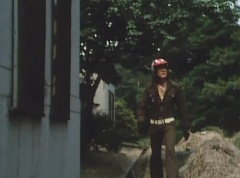 Several of EAGLE's soldiers are patrolling the Kanto Nuclear Power Plant #1 and the EAGLE Headquarters. Kenji Asuka and Peggy Matsuyama arrived on their Machine. They are also patrolling the area. Eventually they get off their Machine and decided to patrol different areas on foot. After awhile, Kenji enters a building and Momo Ranger runs into him. Kenji is concerned and asks what happened? Momo Ranger asks Kenji, did someone run through here? Kenji responds no and Momo Ranger takes off running. Kenji is confused. Afterwards, at the Gorengers' Secret Base, Peggy tells Kenji, Commander Edogawa, and Akira Shinmei, what had happened with a strange mirror. She knows someone was watching her. Kenji dismisses it as her mind playing tricks. It happens sometimes. Peggy is adamant that it was real. Tsuyoshi Kaijo and Daita Oiwa enter. Tsuyoshi informs Commander Edogawa that there was no trace of the Black Cross Army at headquarters. Daita adds, the headquarter staff said they installed the mirror three days ago. Peggy insists that someone was watching her. Daita dismisses it as Peggy being tired. It's hard for a lady to fight the Black Cross Army. Which upsets Peggy even more. I'm not tired at all. Commander Edogawa wants Peggy to take break for two or three days. Peggy protests. Tsuyoshi tries to cheer Peggy up by telling her, lucky you, a summer break!