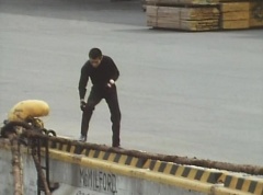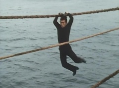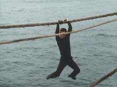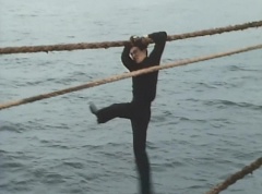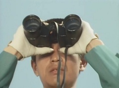 The Gorengers had been notified that EAGLE Agent 0010 had obtained the Hurricane Diode from Wing Mask. Aka Ranger, on his Machine, along with Momo Ranger and Mido Ranger, on their Machine, were on the way. Unfortunately Wing Mask had gotten the Hurricane Diode back from EAGLE Agent 0010, by causing his car to crash and knocking him unconscious. The three Gorengers arrive at the accident. Wing Mask and his Zolders are still there. Wing Mask has the Zolders attack. Aka Ranger leaps into the air and strikes a Zolder with his Red Vute. Mido Ranger fights another Zolder. He strikes the Zolder several times. Momo Ranger is fighting another group of Zolders. She lands a hard kick on one of the Zolders. Aka Ranger battles yet another set of Zolders with his Red Vute. Momo Ranger uses her Earrings Bomb and tosses it towards another group of Zolders. Wing Mask throws his Condor Wing towards the three Gorengers. Mido Ranger throws his Midomerang to strike Condor Wing. Aka Ranger fights another Zolder using his Red Vute to strike the Zolder several times. Wing Mask grabs Yuki, a young girl that was close by, and tells the Gorengers, don't move. The three Gorengers stop fighting the Zolders and watch as Wing Mask leaves with Yuki. As Wing Mask is driven away, he uses his weapon to fire at the three Gorengers running after them. Afterwards, Tsuyoshi uses binoculars to spy on Sea Moon, the ship that Wing Mask is on with Yuki. Wing Mask is kind to the young girl. Tsuyoshi tells Peggy and Kenji that Wing Mask is using Yuki as a bodyguard, knowing that the Gorengers will be unable to lay a finger on him. Kenji is upset over the idea of using little girls as bodyguards. Peggy points out that it's Black Cross Army - they don't have morals. The three put their heads together and come up with a plan. Peggy walks up to the ship and talks to Yuki. Wing Mask spots them and Peggy grabs Yuki off the ship. Peggy fights the Zolders and Wing Mask, while trying to protect Yuki. Kenji rides up on his Machine and Peggy places Yuki in the sidecar and Kenji drives away, as Peggy continues to fight.