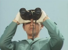 Daita had been kidnapped by Witch Mask. Witch Mask also had stolen the Freeze Beam Baraka from EAGLE. At Gorenger Secret Base, Commander Edogawa, Tsuyoshi, and Akira are looking at a photograph of a strong fortress. Akira comments, we need to rescue Daita. Tsuyoshi agrees. He also wants to get back the stolen bazooka. Yoko enters the room. She tells the group, Kanta No. 8 Team has gone to the rescue. Tsuyoshi becomes upset, this is not good. Tsuyoshi leaves to help Kanta No. 8 Team. Aka Ranger rides his Machine. He soon comes onto an area with snow and realizes Witch Mask has beaten him to No. 8 Team. Later, Witch Mask and several Zolders ride in a Jeep and soon come across several large metal containers blocking the road. Witch Mask tells the Zolders to get them out of the way. The Zolders easily move the containers aside. From beneath the ground, Aka Ranger peers out. He quickly gets underneath their Jeep and holds on. The Zolders return to the Jeep, and the group continues on their way. Soon, they are stopped at the entrance to the Fortress by a pair of Zolders. A Zolder does a quick check on the Jeep and then waves them through. Once pass the gates, Aka Ranger lets go and lands on the ground. He quickly gets up and tries to get out of sight. A pair of Zolders spots him and starts firing at him. The Zolders close in on Aka Ranger, but are soon distracted by a dog running by. Aka Ranger leaves his hiding spot and soon spots a high stone wall, with Zolders on top of it. Aka Ranger activates Birdie and flies to the top of the fortress. He fires his Silver Shot at a pair of Zolders. One of the Zolders is hit and falls to the pavement. Aka Ranger leaps down and fights the remaining Zolder. He lands a punch and a kick on the Zolder, defeating it. Aka Ranger transforms back into Tsuyoshi. He quickly removes the garments from the fallen Zolder. Disguised as a Zolder, Tsuyoshi makes his way around the Fortress. Not far from him, Witch Mask commands the Black Cross scientists to turn the Beam's power up. She wants to freeze all of Tokyo. Tsuyoshi overheard this and is determined to stop Witch Mask. Daita sits in his cell, he is very cold and sneezing. A Zolder is guarding his cell, when another "Zolder" approaches and tells him, he is to take Daita. The Zolder gives him the key, and the "Zolder" unlocks the cell and enters. The "Zolder" tells Daita, he is sentenced to death. Daita pleads with him, telling him please, no. I won't be able to eat curry rice anymore! The "Zolder" drags Daita out of the cell, telling him he is going to die. Daita clings to the bars of the cell. Carefully, Tsuyoshi lifts up his face covering and speaks Daita's name. Daita turns around and sees it's Tsuyoshi. The other Zolder has spotted the exchange and gets ready to fire at them. Daita punches the Zolder several times and tosses him into the cell. Daita slams the door shut on the Zolder. Carefully, Tsuyoshi and Daita walk through the fortress. Daita continues to sneeze and Tsuyoshi tells him to try not to sneeze. Daita comments on how cold it is. Tsuyoshi opens a door and peeks inside. There is a cape hanging in the room, which Daita is happy to see and takes it. Daita has removed his garments except for his boxers, cap, socks and shoes. He uses the cape to keep him warm. Tsuyoshi fills Daita in on Witch Mask's plans to freeze Tokyo. Daita remarks, it's making me sneeze just by thinking about it. Daita is about to sneeze again and Tsuyoshi quickly covers Daita's mouth and warns him not to sneeze. The plan is to steal the jeep with the bazooka. They spot Witch Mask and another Zolder heading their way. Witch Mask has spotted them as well and is suspicious of the pair. She asks who they are. Daita responds, I can ask the same question. Witch Mask answers, I'm Witch Mask, of course. Daita claims he is Witch Mask. Witch Mask claims, no she is and declares the other Witch Mask is a fake. Several more Zolders appear. Daita yells, no the other Witch Mask is the fake and to get her. They go back and forth, until Daita gives a riddle for Witch Mask to solve. Witch Mask answers the riddle and Daita laughs. He tells Witch Mask, you are more stupid than Daita and points out the error. Daita then tells her, if you can't solve a riddle like this, you must be fake. Daita orders the Zolders to grab Witch Mask. Witch Mask insists she is the real one. But the Zolders drag her away. Daita lets out a large sneeze, which knocks the hood off his cape, revealing his identity. Witch Mask spots Daita and orders the Zolders to grab him. Daita and Tsuyoshi run. As the Zolders try to grab a hold of Daita, the cape is removed. Daita tells them, don't be a pervert. Tsuyoshi and Daita run away with the Zolders close behind. They find a motorcycle and hop on it. They take off on the motorcycle. The road shakes as Tsuyoshi and Daita speed along and they have to stop. Armory rises from underground. Things are not looking good for the pair as several Zolders are behind them and in front of them is the jeep with Witch Mask and more Zolders. Witch Mask tells them to put their hands up. Tsuyoshi does so. Daita doesn't want to, as his boxers are loose but reluctantly does so. Witch Mask tells them she is going to kill them. Tsuyoshi responds, we've got other Agents too. It's a shame for only two to die. Daita adds, the Gorengers have five members. Witch Mask likes the idea of killing all five of them. She tells them to make them come with Variblune. Tsuyoshi asks her if she is going to kill them in the air? Witch Mask doesn't answer, just tells them to call them. Tsuyoshi and Daita glance at each other and then make the call that they need help. Tsuyoshi and Daita are tied to railings outside the building. Zolders have the Freeze Beam Bazooka pointed at the sky as Witch Mask also watches. A scientist is also there with a device to track Variblune. His device picks up the signal and he lets them know that Variblune is coming. Witch Mask is pleased. Daita 