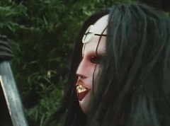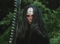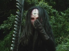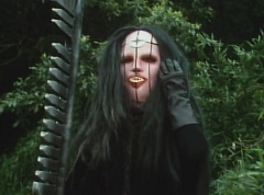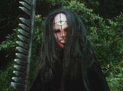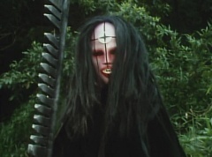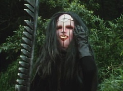 Elsewhere, a worker is checking the reservoir and becomes alarmed as the water is evaporating. He starts to run, ready to inform people, when he is stopped by Black Hair Mask. The man is terrified as Black Hair Mask laughs at him. Black Hair Mask is about to strike the worker when Midomerang strikes him. Black Hair Mask informs Mido Ranger and Momo Ranger that they are too late. There's no water left in the reservoir!
