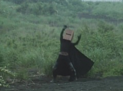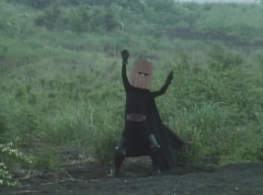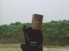 Mirror Mask tries again. This time it strikes a boulder and breaks it apart. The Gorengers prepare to summon Gorenger Storm. Momo Ranger places a pink ball on the ground and kicks it towards Ki Ranger. Ki Ranger head butts the yellow ball towards Mido Ranger. Mido Ranger kicks the green ball towards Ao Ranger. Ao Ranger kicks the blue ball towards Aka Ranger. Aka Ranger jumps into the sky and kicks a red, spikey ball towards Mirror Mask. Gorenger Storm hits Mirror Mask and destroys him.