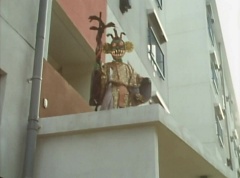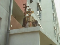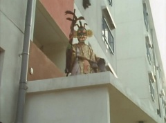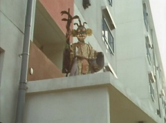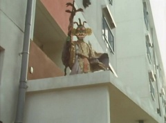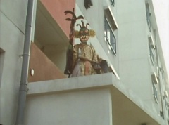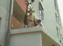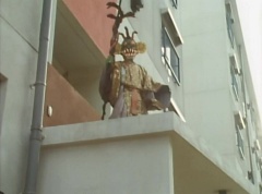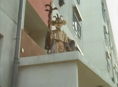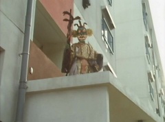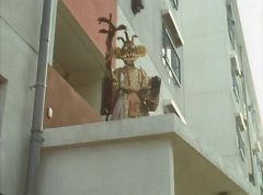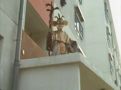 The man is unaware of the snake. The snake is ready to strike when Ao Ranger fires his Blue Cherry at the snake. The snake is hit and the man becomes frighten. The man runs away. Poison Fang Mask is not happy and tells Ao Ranger, I'll remember this! I will definitely eliminate that man!