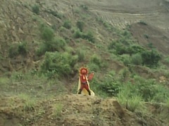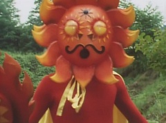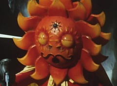 Sun Halo Mask runs over and tells Mirror Mask to get a grip. Mirror Mask argues with Sun Halo Mask. The reflection had made Mirror Mask mad and he relentlessly attacks Sun Halo Mask. Sun Halo Mask is knocked off his feet and he yells at Mirror Mask that we're on the same side. The fight continues between the two. Sun Halo Mask continues to defend himself against Mirror Mask. Sun Halo Mask bets that the memory circuit got messed up. This time Sun Halo Mask knocks Mirror Mask off his feet. Sun Halo Mask retreats. The Gorengers destroy Mirror Mask with Gorenger Storm. Afterwards, Black Cross Fuhrer is upset over another failure. Sun Halo Mask apologizes. Black Cross Fuhrer angrily asks, who can defeat the Gorengers? Black Hair Mask steps forward and states he will take the challenge.
