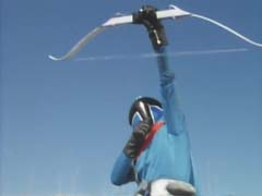Mido Ranger and Ki Ranger rescued Peggy, Dr. Muto, and several scientists from the basement of Muto Bacteria Research Institute's basement, where they had been held prisoner. Dr. Muto and his scientists quickly run but stop when they see the hot air balloon above them. Momo Ranger joins the group and tells them they need to bring down the balloon. Mido Ranger is ready to strike the hot air balloon with his Midomerang. Aka Ranger runs up and yells at Mido Ranger to wait. Aka Ranger joins the group and warns them if they make the balloon drop, the mold will spread everywhere. Momo Ranger points out if they leave it, they will scatter the mold too. Jade Mask shouts out to them from above. He gloats, no matter how hard you try, you can't stop the balloon! Two Zolders are in the hot air balloon and once it reaches a certain point, they are to press a button. Out of the clouds, Variblune appears and quickly gets close to the hot air balloon. Ao Ranger flies out of Variblune with his Birdies and into the hot air balloon. Ao Ranger fights the two Zolders, striking them several times. One of the Zolders grabs Ao Ranger from behind and the two struggle which causes the hot air balloon to bounce around. Ao Ranger breaks free and lands a blow on the Zolder's back. Ao Ranger strikes the other Zolder several times. In the fields below, Jade Mask and several Zolders watch anxiously. Ao Ranger knocks both of the Zolders out of the basket. Ao Ranger finds the control box and with a few quick adjustments, disables the box. Ao Ranger unravels a banner, which states, too bad your plan failed. Jade Mask is furious. Ao Rangers takes the control box and joins the rest of the Gorengers on the ground. The Gorengers face off Jade Mask and several Zolders. Ao Ranger and Aka Ranger leap into the sky. Ao Ranger kicks a Zolder away. Aka Ranger strikes another Zolder several times. Ki Ranger flings a Zolder away. Momo Ranger kicks and strikes two Zolders. Ao Ranger kicks another Zolder. Aka Ranger punches and kicks another Zolder. Mido Ranger lands a kick and several strikes against another set of Zolders. Ao Ranger fires his Blue Cherry and hits a Zolder out of the sky. Aka Ranger wraps his Red Vute around a Zolder's neck and then kicks the Zolder away. With Red Vute, Aka Ranger knocks a weapon out of a Zolder's hands. Mido Ranger tosses his Midomerang and it hits a Zolder, knocking it off it's feet. Mido Ranger fights another pair of Zolders with his Midomerang. Momo Ranger flips a Zolder and then throws her Earrings Bomb towards another pair of Zolders. Aka Ranger fights another set of Zolders with his Red Vute as Ki Ranger punches a Zolder several times. Jade Mask decides now is the time to run away. Momo Ranger spots him and is determined not to let Jade Mask escape. Momo Ranger throws her Earrings Bomb towards Jade Mask. Jade Mask is blown off his feet and lands inside a crevice that fills with smoke. Another hot air balloon emerges from the smoke, with Jade Mask inside it's basket. Jade Mask bids the Gorengers farewell, as he flies away. Aka Ranger calls for Gorenger Storm. Momo Ranger kicks the ball over to Ki Ranger. Ki Ranger bounces the ball off his helmet towards Mido Ranger. Mido Ranger kicks the ball over to Ao Ranger. Ao Ranger kicks the ball over to Aka Ranger. Aka Ranger leaps up and kicks the ball towards the hot air balloon. Gorenger Storm hits the hot air balloon, destroying it and Jade Mask.