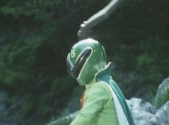 Several trucks were driving along a dirt road. It was EAGLE. They were transporting building materials. As they drove along, one of EAGLE's officers notice a strange green gas ahead of them. Soon the gas engulfed the trucks. The EAGLE soldiers had a difficult time breathing. They quickly pulled off the road and jumped out of their vehicles armed. In the smoky haze, Poison Gas Mask appeared. One EAGLE solider fired at Poison Gas Mask, but it did nothing. Several Zolders appeared over a ledge and they fired at the soldiers. The EAGLE officer fired several times at Poison Gas Mask but nothing happened. Poison Gas Mask pulled out his weapon and fired and struck the EAGLE officer along with the rest of the EAGLE soldiers. All the EAGLE soldiers were deceased and the Zolders gloatingly walked over them. Poison Gas Mask noted that they were also building a factory. The Black Cross Army took all of the building materials, along with their trucks, and left. Close by, on their Machines, Kenji and Tsuyoshi had witnessed the battle. Tsuyoshi recognized Poison Gas Mask. On their Machines, the two followed the trucks. Poison Gas Mask spotted them in the truck's side mirror. The trucks entered a tunnel. Tsuyoshi and Kenji also entered the tunnel, but when they exited, they could no longer see the trucks. As Kenji and Tsuyoshi tried to figure out what happened, Poison Gas Mask appeared above them. Poison Gas Mask fired at them and green gas began to fill the area. Tsuyoshi quickly rolled out of the way and shouted at Kenji to transform. The two transformed into Mido Ranger and Aka Ranger. Aka Ranger landed on one side of Poison Gas Mask and Mido Ranger landed on the other side of Poison Gas Mask. Aka Ranger used his Red Vute against Poison Gas Mask and it wrapped around Poison Gas Mask's wrist. Poison Gas Mask struggled to free himself. Mido Ranger threw his Midomerang towards Poison Gas Mask. When the blast cleared, Poison Gas Mask was gone. Mido Ranger was convinced Poison Gas Mask was back in the tunnel. Mido Ranger and Aka Ranger ran back into the tunnel. Green gas began to pour into the tunnel. Aka Ranger and Mido Ranger were having a difficult time. Aka Ranger spotted Poison Gas Mask and raced over to him. Aka Ranger tried to use his Red Vute but Poison Gas Mask got away before he could strike. Poison Gas Mask appeared behind Mido Ranger. When Mido Ranger turned around, Poison Gas Mask struck him. Mido Ranger landed hard on the pavement. Aka Ranger ran over to check on his friend. Angry, Aka Ranger used his Red Vute, but Poison Gas Mask vanished before it could strike. Aka Ranger heard Poison Gas Mask's laugh and heard him say, until we meet again. Mido Ranger and Aka Ranger went to their secret base to inform the rest of the team, what had happened. Later, Kenji headed out on his own to face Poison Gas Mask. He follows Poison Gas Mask through the city. Angrily, he removes his bandages and throws them on the pavement and then continues to follow Poison Gas Mask. Poison Gas Mask briefly looks behind him and Kenji quickly hides. When Kenji catches up to Poison Gas Mask, he transforms into Mido Ranger. They both leap into the air and once they land on the ground, fight each other. Poison Gas Mask tries to strike Mido Ranger, but Mido Ranger blocks the move. Poison Gas Mask tries to strike Mido Ranger with his sword, but is blocked again. Mido Ranger throws his Midomerang towards Poison Gas Mask. It hits a statue and slices it in half. Mido Ranger tries again, this time Midomerang hits some trees. Poison Gas Mask is behind Mido Ranger and shoots his gas at him. Mido Ranger has trouble breathing and falls to the ground. Poison Gas Mask walks towards him and Mido Ranger tells him, he won't let him win. Mido Ranger is taken to Black Cross Army's Factory and tortured. Eventually Mido Ranger agrees to trick his friends. When he is given a communication device, Mido Ranger tells his friends Poison Gas Mask's plans and where the poison gas factory is located. The communication device is yanked and away and Mido Ranger is tortured and eventually tied to a cross. After awhile, the rest of the Gorengers located him and revive with Gorenger Charge. Mido Ranger breaks free of his bindings and joins the rest of the Gorengers as they search for the factory. They stop when Poison Gas Mask and several Zolders are spotted. Poison Gas Mask commands the Zolders to attack. The Gorengers and Zolders fight each other. Aka Ranger wraps his Red Vute around a Zolder and defeats it. Mido Ranger fights two Zolders with several kicks. Momo Ranger fights another pair of Zolders with several chops. Ki Ranger knocks the Zolders against each other. Ao Ranger fights a Zolder with several chops. Ki Ranger distracts another group of Zolders and then punches the leader, causing the leader and the Zolders behind him to fall to the ground. Aka Ranger fights another Zolder with his Red Vute. It wraps around the Zolder's neck and Aka Ranger gives a kick, knocking the Zolder aside. Ao Ranger punches another group of Zolders. Ki Ranger tries to fight Poison Gas Mask, but is struck and slides down the hill. The rest of the Gorengers race over to Ki Ranger. They stop him from continuing to slide and Ki Ranger apologies, I was a little off guard. Poison Gas Mask jumps and lands closer to the Gorengers. Poison Gas Mask commands to release the poison gas. Below, in the factory, a scientist pulls down a lever, releasing the poison gas. The Gorengers back away from the poison gas. Poison Gas Mask informs them, there are tons of natural gas springs at the bottom of the earth. We invented a device that changes natural gas into poisonous gas. Inhale it as much as you can! The poison gas will spring out unlimitedly. Poison Gas Mask laughs. Ao Ranger uses his Blue Cherry and fires at Poison Gas Mask. Poison Gas Mask vanishes before the arrow can strike. Poison Gas Mask reappears on the ground, a few feet from the Gorengers. Mido Ranger throws his Midomer