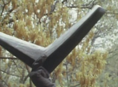 A man is walking, unaware that there are Zolders following him. He senses something and turns around, but sees nothing and continues on his way. The Zolders leave their hiding spot and continue to follow the man. The man spots the Zolders and starts running. The Zolders chase after him. Suddenly Aka Ranger, Ao Ranger, and Mido Ranger appear in front of the man. The man pauses for a moment as the three Gorengers run towards him and then quickly form a protective circle around him. Ao Ranger tells the man, we're on your side. The man thanks them. There is laughter above them. They all look up to see Poison Fang Mask. Poison Fang Mask brags, when it comes to assassination...nobody in the Black Cross Army can surpass me. I'm sure to kill my target. Poison Fang Mask commands the Zolders to attack. As the Gorengers fight the Zolders, the man takes off running. Another set of Zolders chase after the man. Aka Ranger stops them with his Red Vute. Yet more Zolders chases after the man. The man reaches Mido Ranger, who tells him to hurry away as he keeps the Zolders away with his Midomerang. As the man takes off once more, Mido Ranger fights the Zolders with his Midomerang. The man hides and watches as several Zolders try to figure out where he is. They decide on a direction and run past the man's hiding spot. The man leaves his hiding spot and peering around a corner of a building when Poison Fang Mask finds him. Poison Fang Mask points his staff towards the man. A snake slithers close to the man's shoe. The man is unaware of the snake. The snake is ready to strike when Ao Ranger fires his Blue Cherry at the snake. The snake is hit and the man becomes frighten. The man runs away. Poison Fang Mask is not happy and tells Ao Ranger, I'll remember this! I will definitely eliminate that man! Poison Fang Mask takes off. Later, Poison Fang Mask takes Amy, the man's daughter. Poison Fang Mask leads the way as the Zolders pull Amy along. Amy pleads with them to let her see her father, as he is going to die. The group stops when they see Aka Ranger above them. Ao Ranger, Ki Ranger, Mido Ranger, and Momo Ranger are there as well. Amy is very happy to see the Gorengers. Poison Fang Mask has the Zolders attack. Aka Ranger fights a couple of Zolders. He flips one over a ledge. Ao Ranger kicks a Zolder. He uses his Blue Cherry and hits a Zolder. Ki Ranger fights another group of Zolders, tossing one of them over a ledge. Mido Ranger punches a Zolder several times in the face. Momo Ranger kicks a Zolder. Aka Ranger uses his Red Vute to strike another Zolder. When the Zolder stumbles in Momo Ranger's direction, she strikes him. Mido Ranger throws his Midomerang towards Poison Fang Mask. Poison Fang Mask knocks it aside with his staff. The rest of the Gorengers join Mido Ranger. Poison Fang Mask throws his snake bombs towards them. The Gorengers duck down and are not hurt. The Gorengers approach Poison Fang Mask and Poison Fang Mask backs away, along with the two Zolders who still have Amy. Aka Ranger tells Poison Fang Mask to give Amy back. Instead Poison Fang Mask uses his staff to create poison smoke and vanishes, along with the Zolders and Amy. Momo Ranger spots them in the distance and points it out to the others. They all run over to the area. When they reach the area, they see Amy is tied to stake with snakes. Amy spots them and yells for help. Momo Ranger warns the rest of the Gorengers not get too close. Those are no ordinary snakes. Ki Ranger asks, what are they? Momo Ranger replies, I saw them before...those are bombs. Poison Fang Mask pops up from his hiding place. He has overheard their conversation and tells them, they're Snake Bombs. They explode to the sound of this snake whistle. If you want to save this girl, then bring Mr. Scott over here. In exchange for Mr. Scott, I'll hand this girl over to you. If you don't comply...Poison Fang Mask indicates he will blow his snake whistle. Aka Ranger states, we have no choice. Ao Ranger doesn't agree. Aka Ranger turns his back towards Poison Fang Mask and takes out his Red Vute. Aka Ranger quickly turns around and uses his Red Vute to take the snake whistle out of Poison Fang Mask's hands. The Gorengers run forwards. Mido Ranger and Momo Ranger remove the Snake Bombs from Amy. Poison Fang Mask picks up his snake whistle and blows it. Momo Ranger and Mido Ranger quickly toss the Snake Bombs. The Snake Bombs land on two Zolders. The Snake Bombs go off, destroying the two Zolders. Poison Fang Mask is angry. The Gorengers summon Gorenger Storm. The Gorengers get into position. The silver ball appears in Momo Ranger's hands. She kicks it over to Ki Ranger. Ki Ranger head butts it over to Ao Ranger. Ao Ranger kicks it over to Mido Ranger. Mido Ranger kicks it over to Aka Ranger. Aka Ranger leaps into the sky and kicks it over to Poison Fang Mask. Gorenger Storm hits Poison Fang Mask and destroys him.